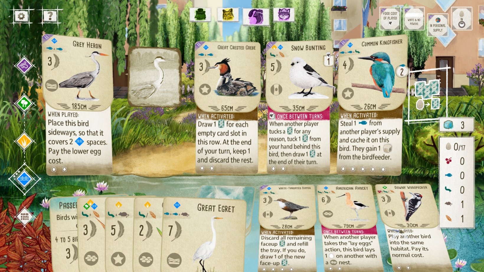While attempting to obtain new birds and complete challenges, players can enjoy the serenity of European landscapes. Inspired by real-life places, Wingspan will feature picturesque landscapes that exemplify the Eastern European blocks blooming with gorgeous Dutch tulips. Alongside this is relaxing and immersive music composed by Pawel Gorniak. This original soundtrack features classical European music, which will help maintain the coolness of the game even in the most competitive rounds.
